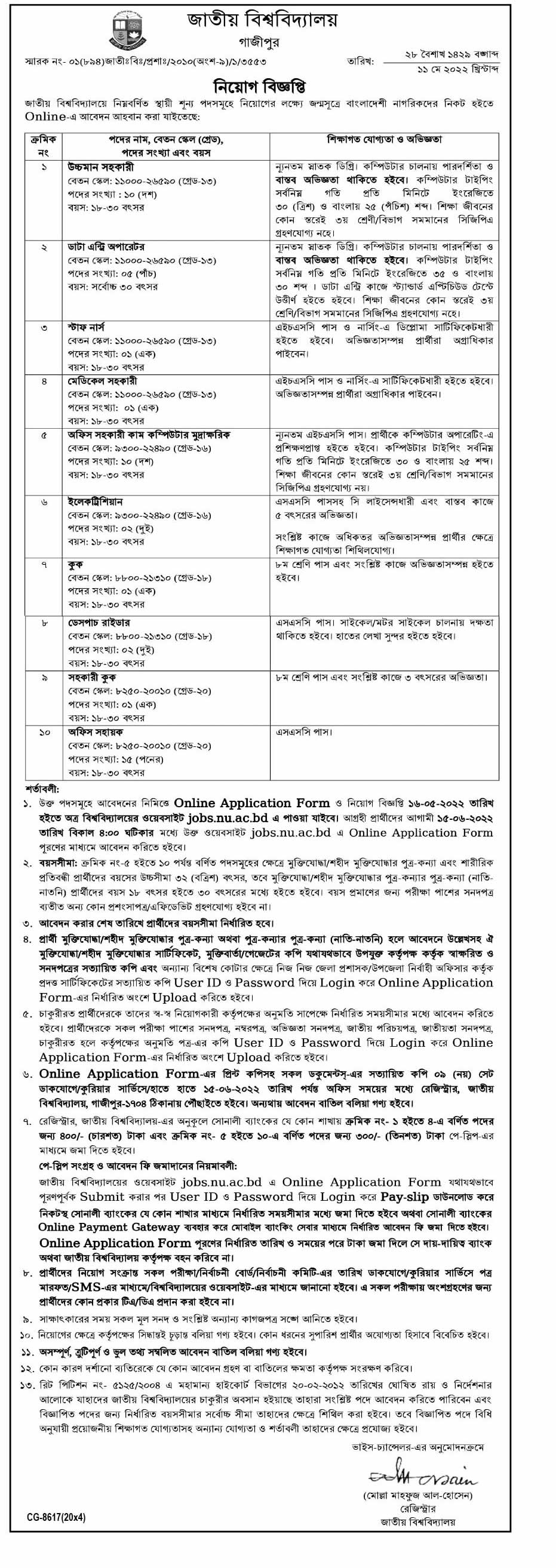 | ■ Job Type: | Govt Bank (National University, Bangladesh) |