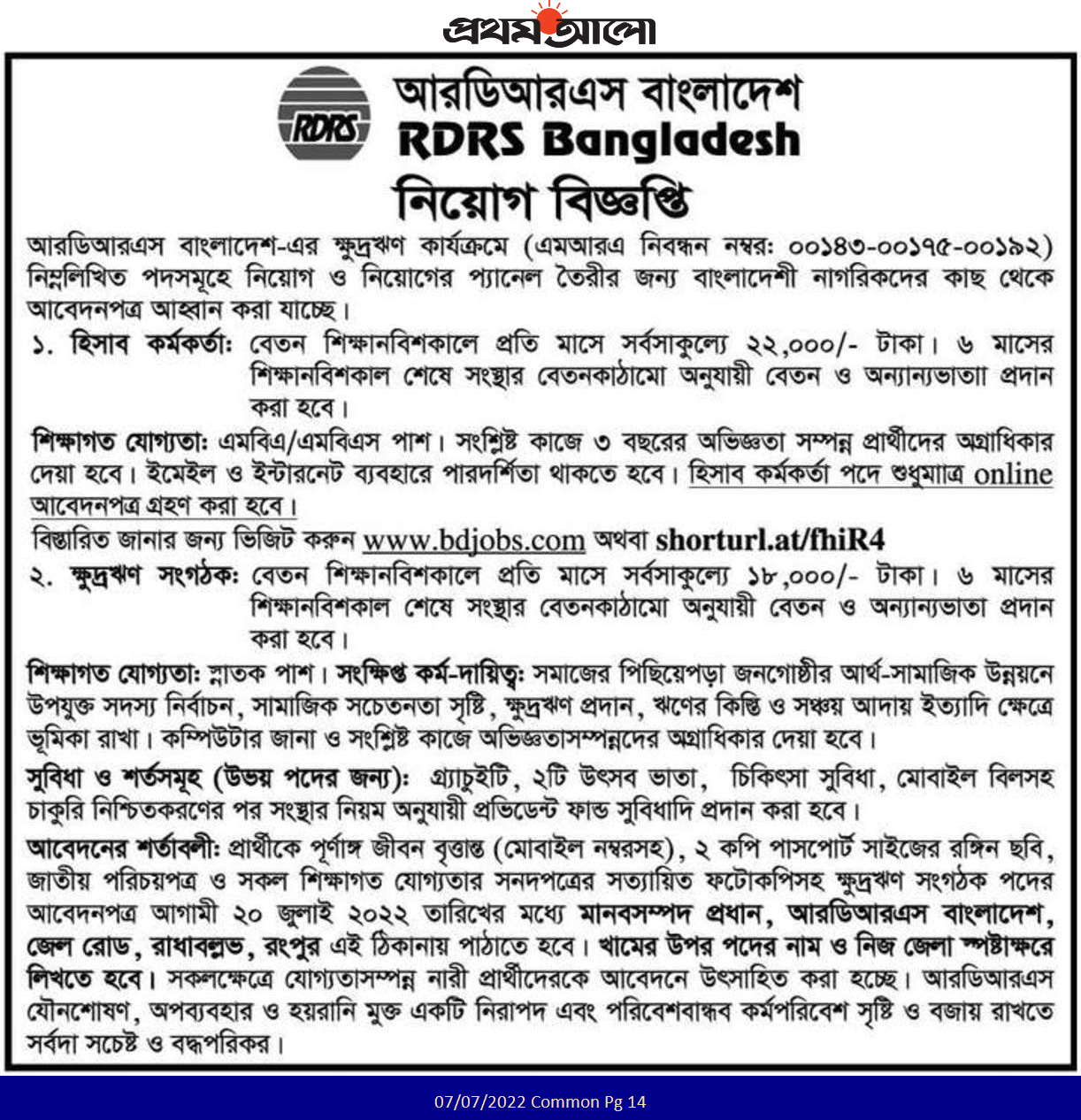 RDRS Bangladesh NGO New Job Circular 2022