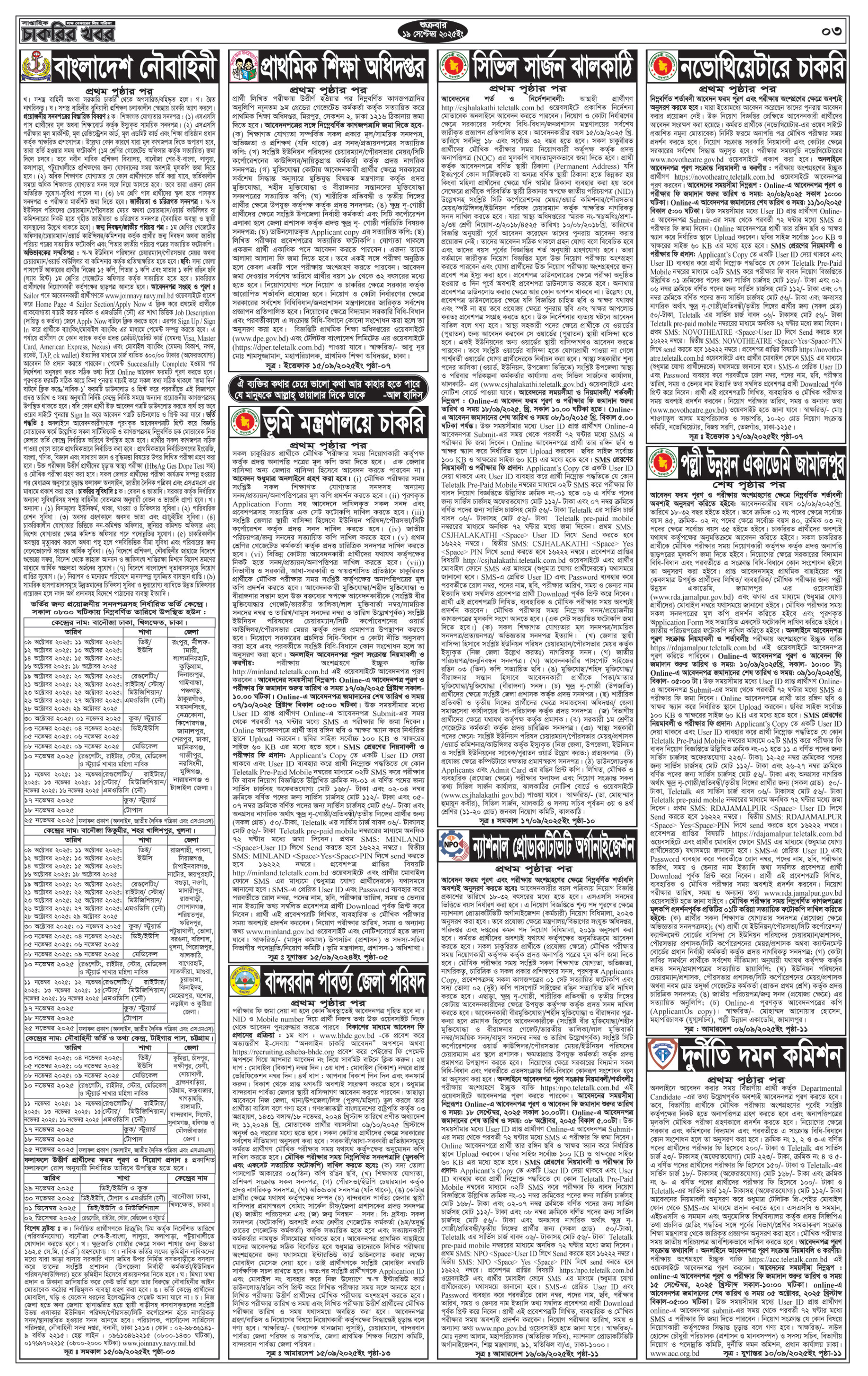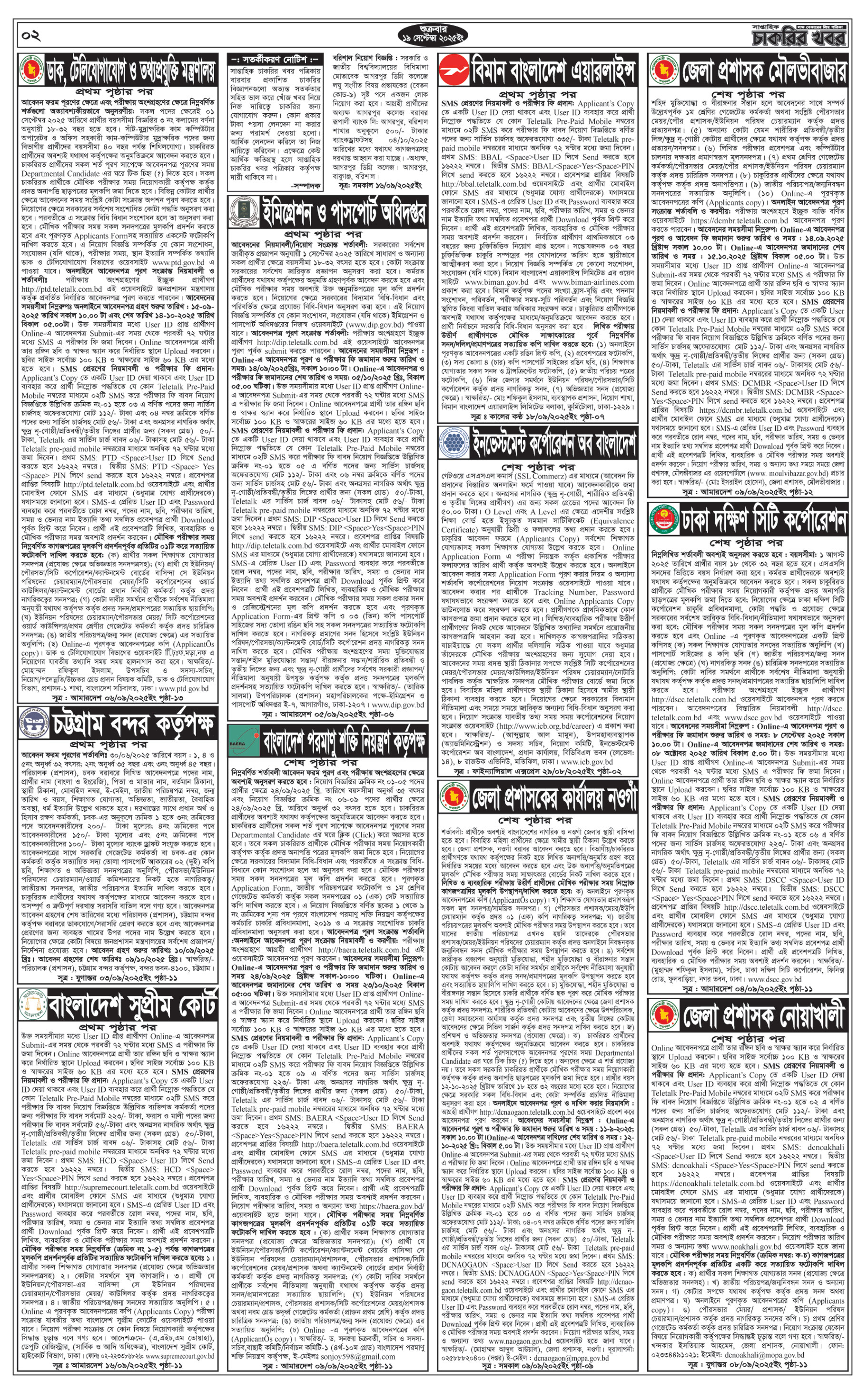 Saptahik Chakrir Khobor is not just a newspaper; it is a comprehensive job portal in print form. The 19 September 2025 edition lives up to this reputation, offering a diverse range of job opportunities spanning various sectors. From government jobs to private sector openings, the newspaper leaves no stone unturned when it comes to employment news. Job seekers can find information about vacancies in banking, education, healthcare, IT, and many other sectors, making it a one-stop destination for those on the lookout for employment.