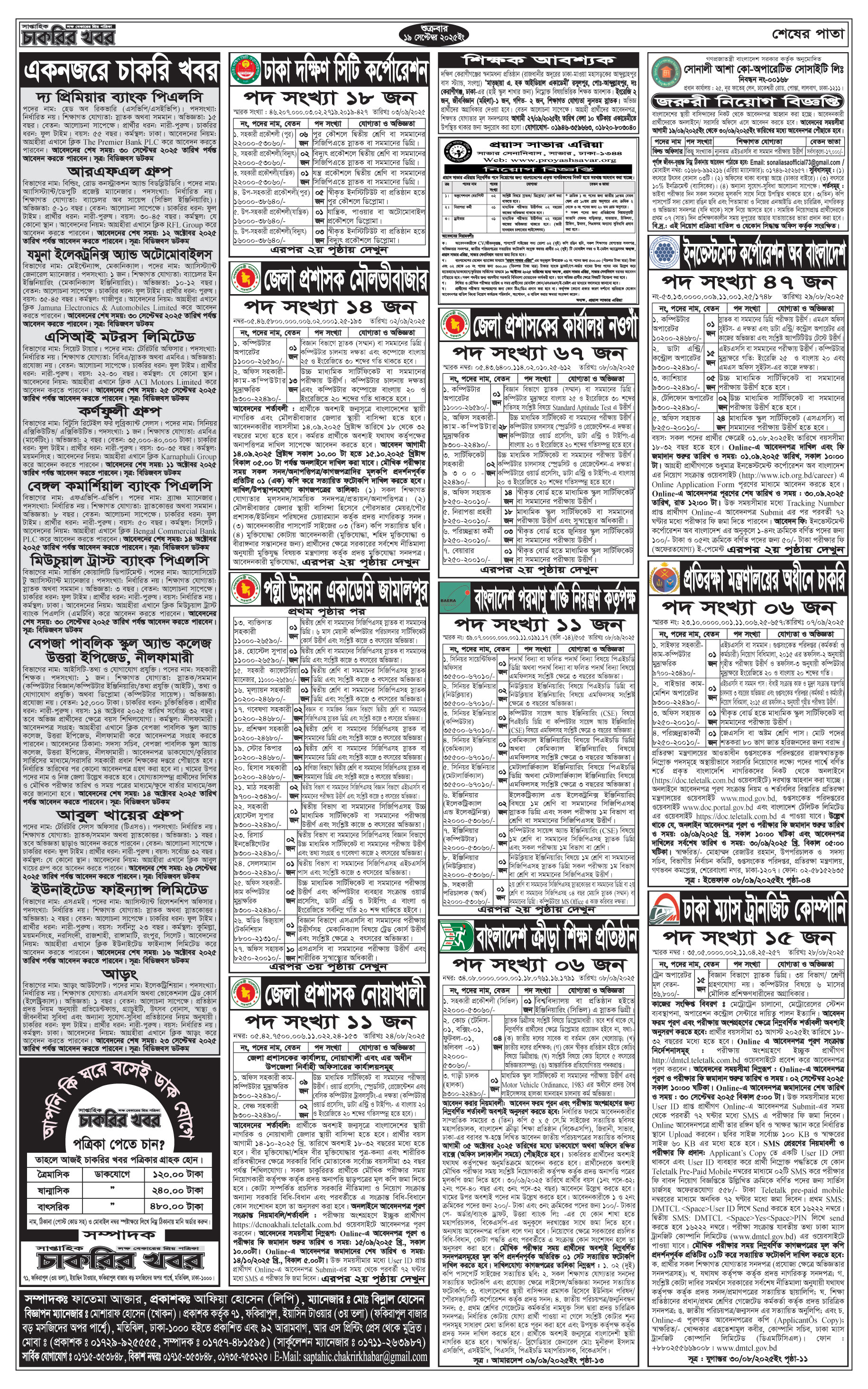 Saptahik Chakrir Khobor Newspaper 19 September 2025